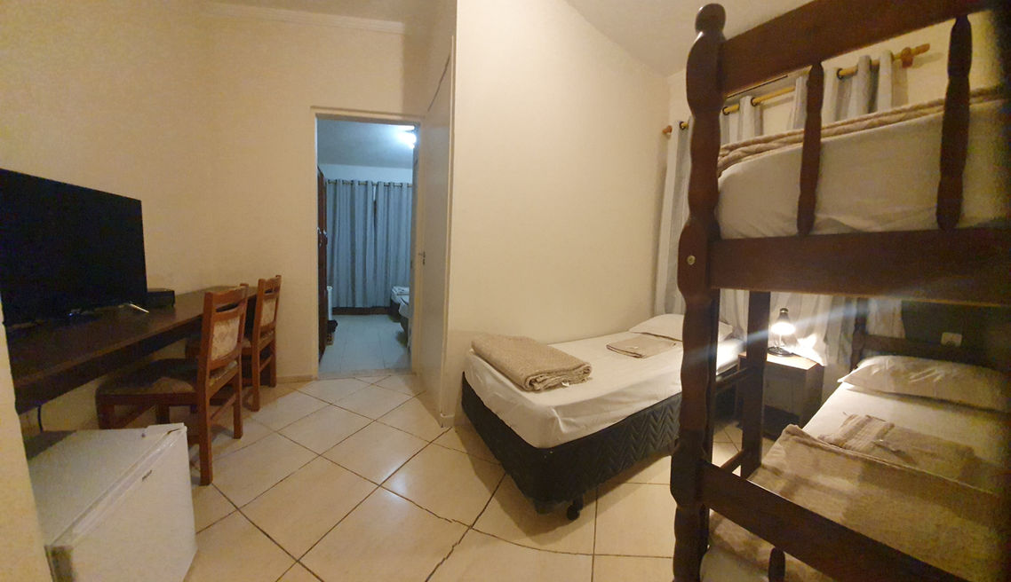 ar-condicionado, frigobar, tv multimidia c/ netflix, café lanche da manhã, internet em toda pousada estacionamento fechado e área de alimentação c/ utensílios para lanches
